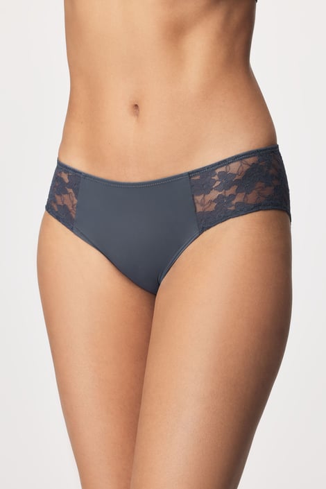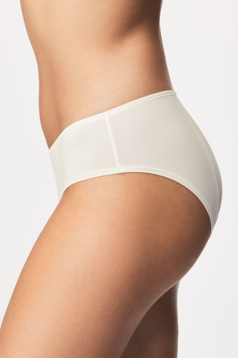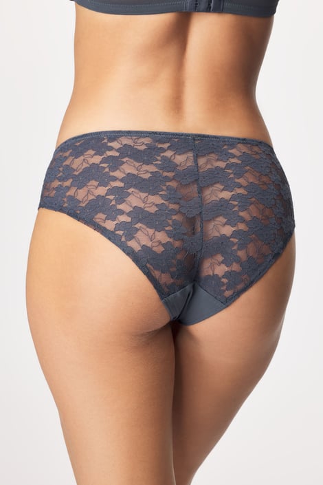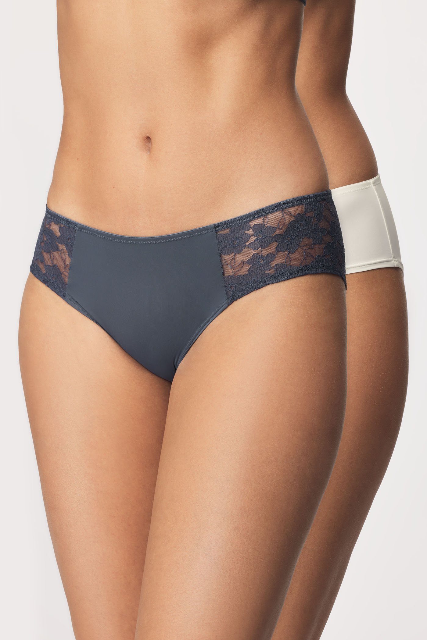 Dwupak klasycznych fig Anika z miękkiej mikrofibry, która doskonale dopasowuje się do ciała. Białe majtki są zupełnie gładkie, natomiast szare dodatkowo mają koronkę z kwiatowym wzorem.