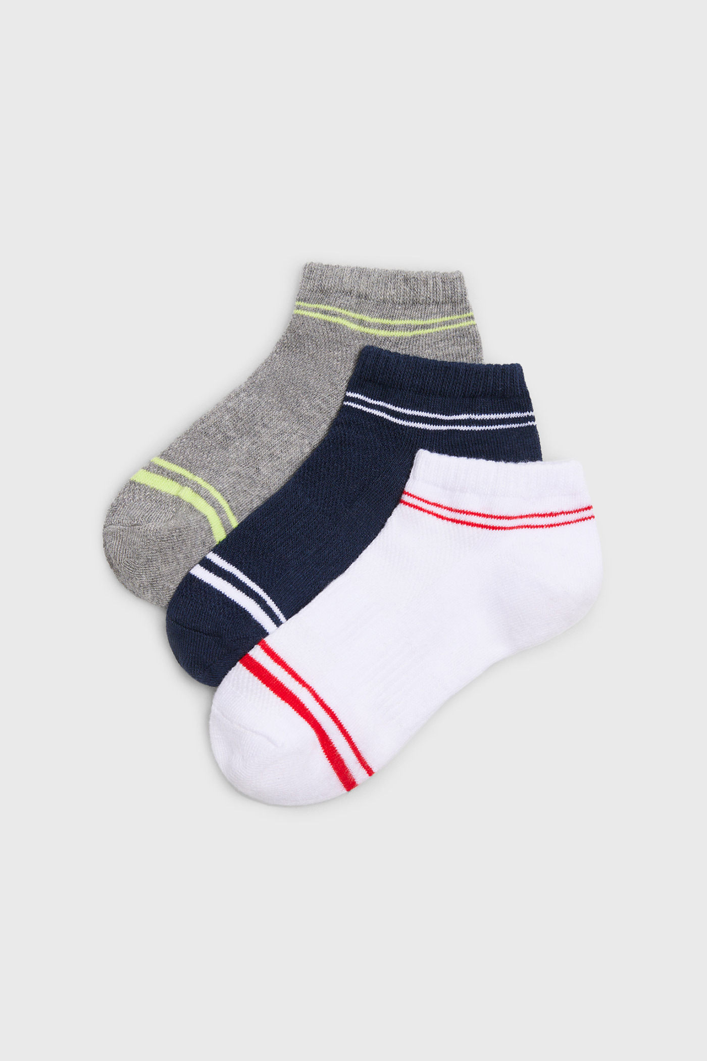 Opakowanie zawiera trzy pary skarpetek sportowych w różnych kolorach, patrz zdjęcie.