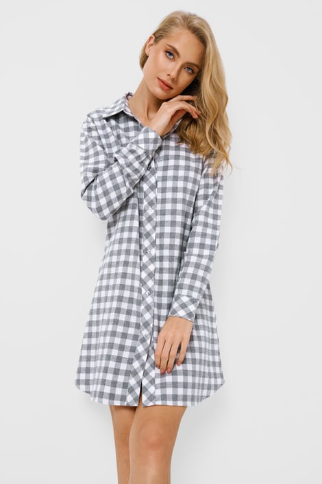 Koszula nocna Marisa z flaneli bawełnianej. Klasyczny „męski” krój, w którym kobietom jest wyjątkowo do twarzy.