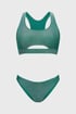Prosty strój kąpielowy bikini Bayo bez fiszbinów zapewnia pełen komfort. Biustonosz o sportowym kroju z wycięciem pod biustem. Majtki o klasycznym kroju. Piękny, ciemnozielony kolor z lureksowym połyskiem. Marka Astratex.