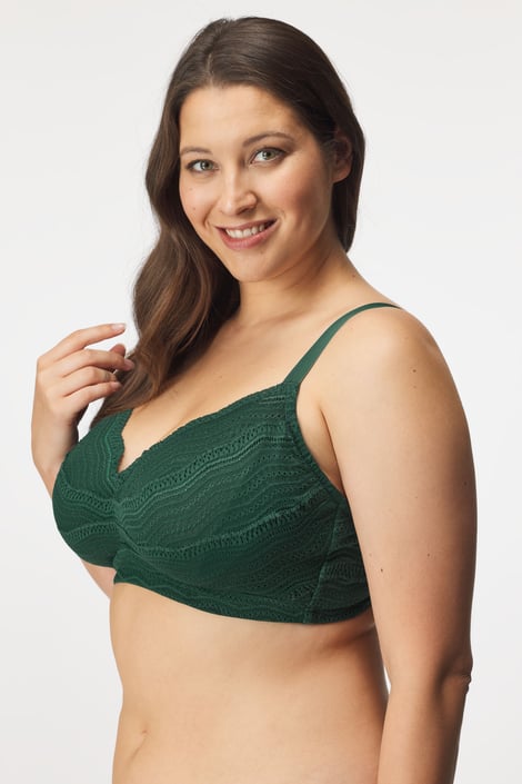 Na koronkową braletkę Cosabella Dolce Congo mogą sobie pozwolić także panie z pełniejszym biustem. Nieusztywniane miseczki mają pomocnicze panele boczne, które pomagają zbliżyć piersi do siebie. Wyższy mostek ładnie utrzymuje piersi na miejscu.
