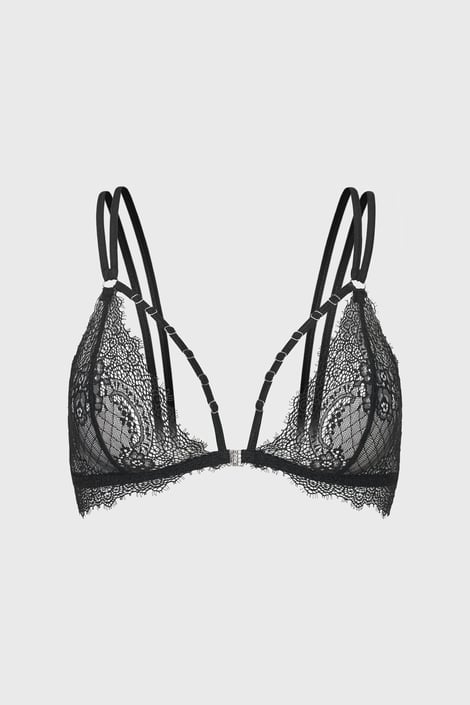 Podaruj sobie subtelnie kuszący drobiazg w postaci biustonosza Karena. Dominuje w nim lekka koronka z kwiatowym wzorem, którą w dekolcie uzupełniają efektowne paski strappy. Między piersiami wyróżnia się zapięcie z aplikacją z dżetów.