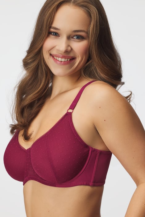 Biustonosz minimizer Karon z miękkiego tiulu. Nieusztywniane miseczki z pionowym szwem zaokrąglają piersi i zmniejszają je optycznie. Biustonosz jest bardzo miły dla skóry.