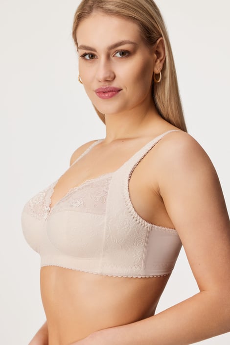 Biustonosz Amelie jest doskonałym rozwiązaniem dla dużych piersi. Nieusztywniane miseczki z wysokim mostkiem ładnie podtrzymują biust, a boczne panele podtrzymujące pomagają zbliżyć piersi do siebie. Wygodę zapewniają również szerokie, miękko wyściełane ramiączka i brak fiszbinów.