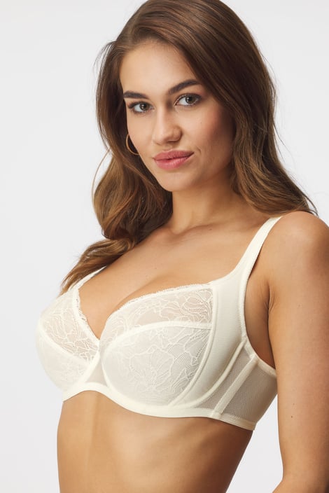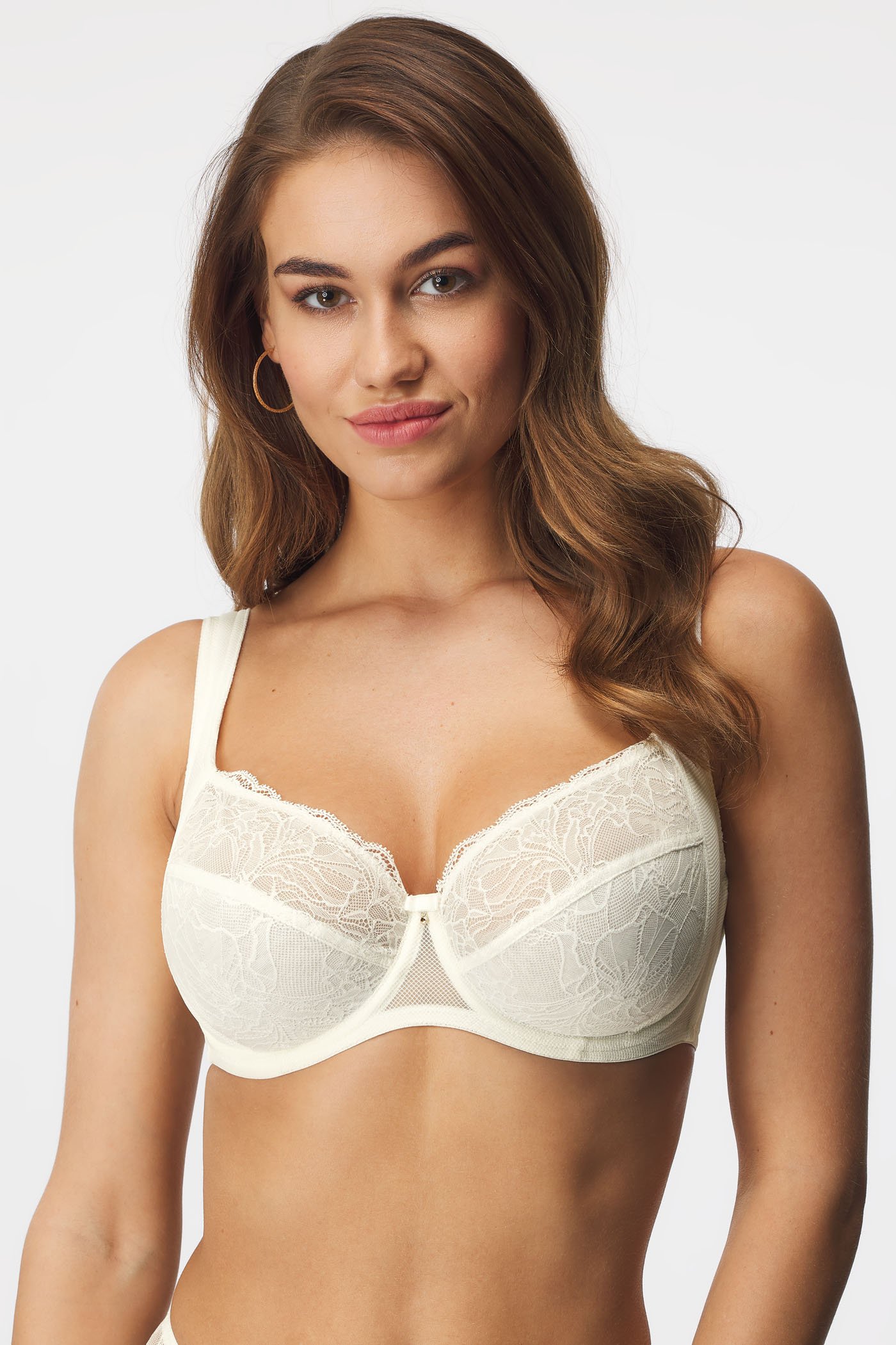 Biustonosz Eilie pięknie wymodeluje duży biust. Koronkowe miseczki mają wzmocnione panele boczne, które zbierają piersi do środka. Miękko wyściełane ramiączka nigdzie się nie wpijają.