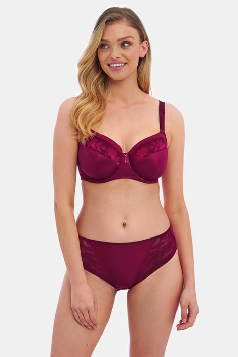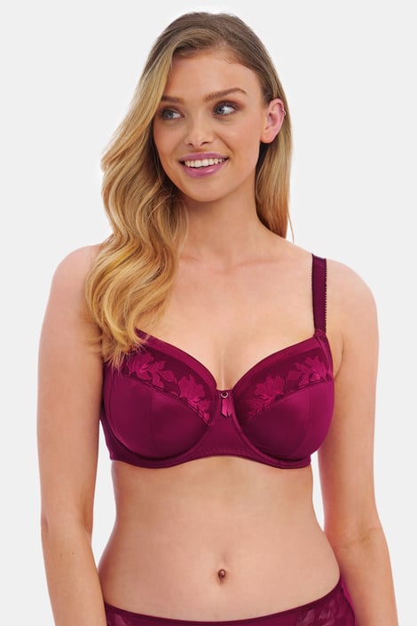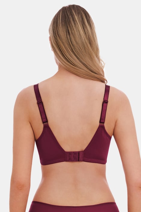 Nieusztywniany biustonosz Fantasie Illusion w eleganckim bordowym kolorze. Miseczki są skrojone tak, aby zapewnić absolutny komfort dużym piersiom. Mają wzmocnione panele boczne, wszyte fiszbiny i wysoki mostek. Szerokie ramiączka są miękkie i nigdzie się nie wpijają.