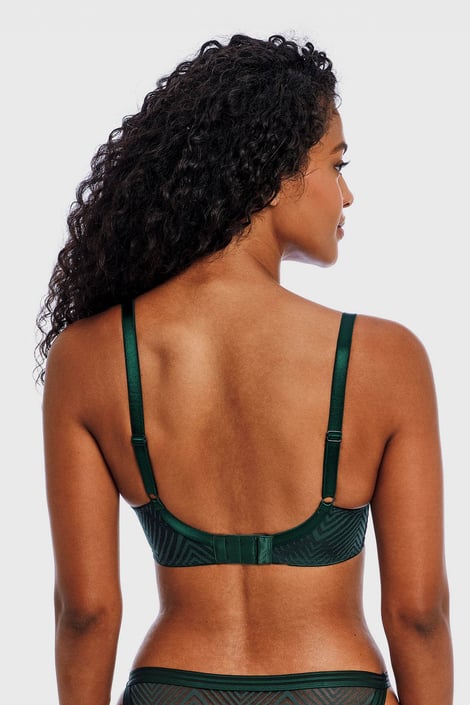 Nieusztywniany biustonosz Freya Tailored łączy w sobie prześwitujący tiul i koronkę z subtelnym geometryczny wzorem. Miseczki mają krój typu T, który zapewnia piersiom atrakcyjny krągły kształt. Elegancki odcień koloru zielonego.