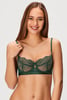 W biustonoszu Honey Green będziesz się czuła niezwykle kobieco. Nieusztywniane miseczki uszyte z tiulu i koronki delikatnie przylegają do piersi i naturalnie je kształtują, a krój typu T ładnie je zaokrągla. W uroczym, twarzowym odcieniu zieleni.