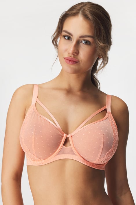 Nieusztywniany biustonosz Kimora będzie ozdobą Twojego dekoltu. Miseczki z prześwitującego tiulu i koronki w kwiaty są wyjątkowo lekkie i łatwo dopasowują się do piersi, a dzięki pionowemu szwowi ładnie je zaokrąglają. Z efektownymi paskami strappy.