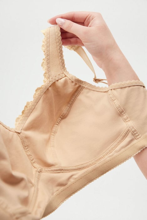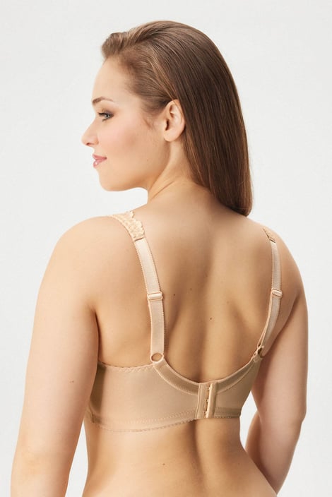 Bawełniany biustonosz Marianne bez fiszbinów został stworzony z myślą o pełnym komforcie. Wysoki mostek nieusztywnianych miseczek, szerokie wyściełane ramiączka i mocny obwód zapewniają podparcie także dużym piersiom. Koronka w rejonie biustu i ramiączek pięknie się wyróżnia w dekolcie.