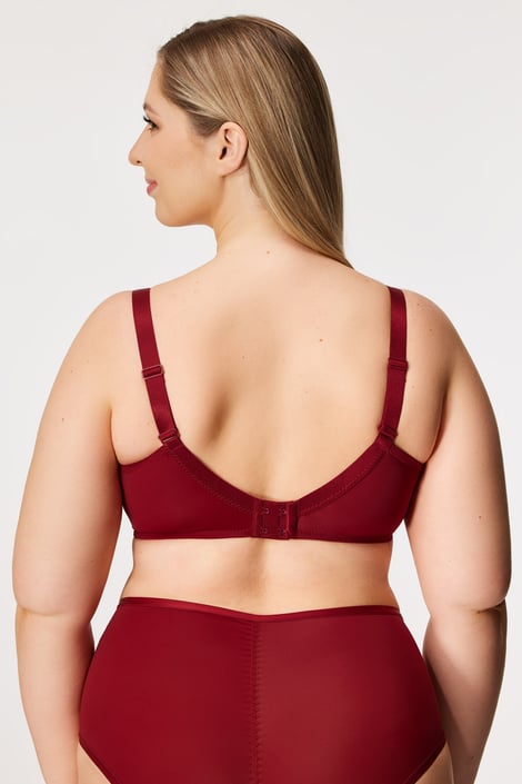 Biustonosz Marie zapewnia należyte wsparcie pełnym piersiom. Nieusztywniane miseczki z elastycznego materiału łatwo dopasowują się do piersi, a pomocnicze panele boczne pomagają zbierać piersi ku sobie. Wysoki mostek.