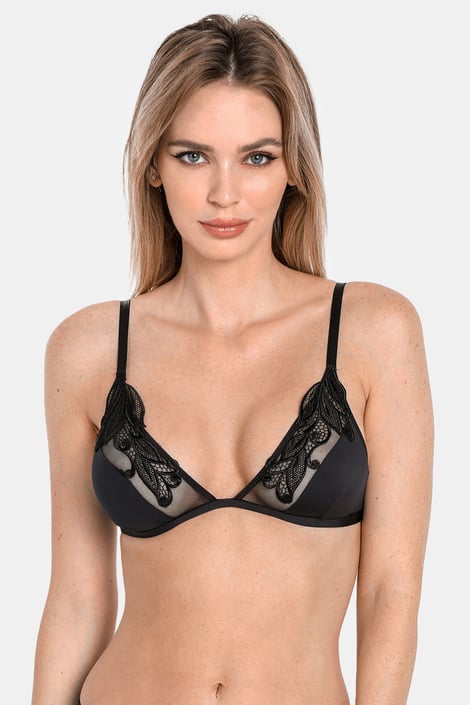 Nieusztywniany biustonosz triangle Savage Love z wąskim obwodem i ramiączkami. Trójkątne miseczki są ozdobione wyrazistą koronką w dekolcie. Lekkie wsparcie dla mniejszych piersi.