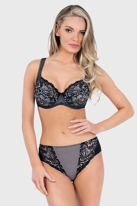 Nieusztywniany biustonosz Silver Touch zachwyca wyrazistą, kontrastową koronką połączoną z drobnym geometrycznym wzorem. Wzmocnione boczne części miseczek pomagają przybliżyć piersi do środka i płynnie przechodzą w wygodne wyściełane ramiączka.