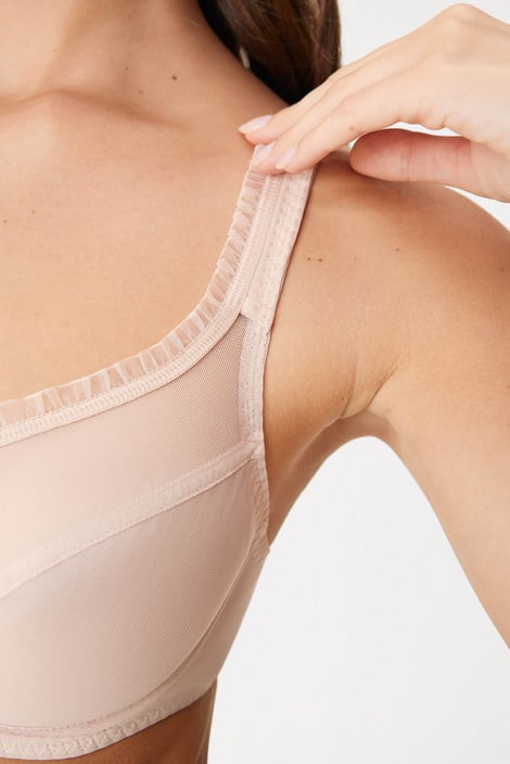 Biustonosz nieusztywniany Tango jest jednocześnie elegancki i zmysłowy. Delikatne tiulowe miseczki zdobi lekkie marszczenie, które przechodzi aż na miękko wyściełane ramiączka. Biustonosz dzięki swojemu designowi jest maksymalnie wygodny także dla kobiet z pełnym biustem.