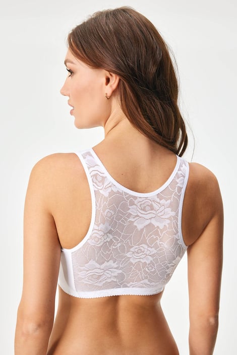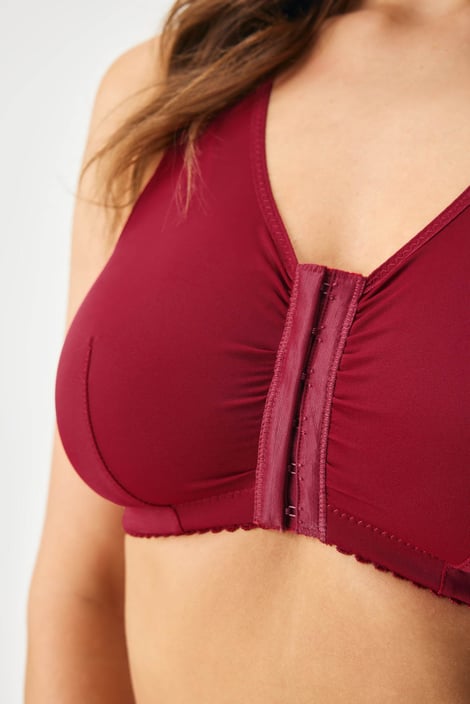 Nieusztywniany biustonosz Tara zachwyca od pierwszego wrażenia swoim niecodziennym designem. Zapięcie na haftki znajduje się z przodu i tworzy wysoki mostek, który skutecznie poskromi także duży biust. Przód jest uszyty z mikrofibry, a pełną część tylną tworzy koronka.