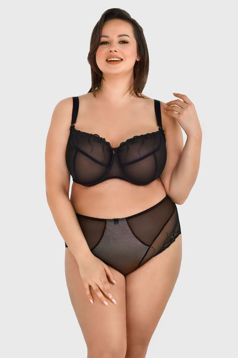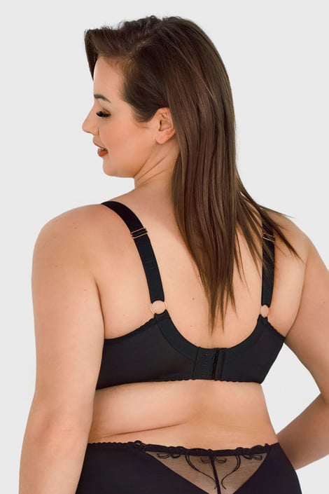 Uroczy biustonosz Zahara doskonale zadba o obfity biust. Nieusztywniane miseczki są uszyte z miękkiego tiulu, który w górnej części zdobi subtelny haft. Krój typu T naturalnie zaokrągla piersi.
