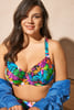 Biustonosz od stroju kąpielowego Muna z wyrazistym tropikalnym wzorem zapewni podparcie dużym piersiom. Nieusztywniane miseczki na fiszbinach mają popularny krój typu T, który naturalnie zaokrągla biust. Ramiączka mają regulację długości.