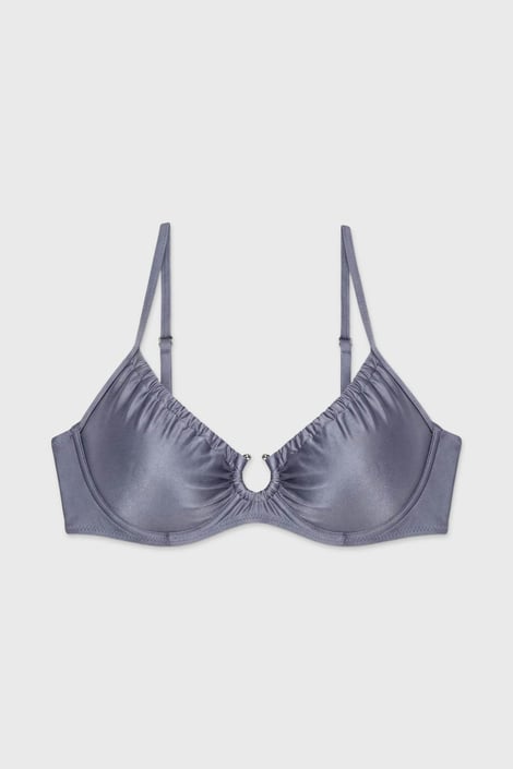 Biustonosz od stroju kąpielowego Sateen Sheen Silque IV przyciągnie Twoją uwagę nietypowym designem. Trójkątne miseczki mają wyjmowane wkładki, którymi można indywidualnie wymodelować biust. Pośrodku ozdoba w postaci metalowego kółeczka. W dekolcie możesz dowolnie ściągać miseczki i regulować w ten sposób ich wysokość. Biustonosz wkłada się przez głowę, ramiączka mają regulację długości. Model został zaprojektowany przez specjalistów z Astratexu i uszyty z miłego materiału o wyglądzie satyny.