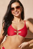 Biustonosz od stroju kąpielowego Sheen Red I zachwyci Cię jaskrawoczerwonym kolorem z lekkim połyskiem. Pośrodku ciekawe wycięcie, połączone metalowymi kółeczkami. Wyjmowane wkładki w miseczkach pomogą wymodelować dekolt. Obwód możesz zawiązać tak, jak potrzebujesz, ramiączka mają regulację długości. Projekt specjalistów z Astratexu.