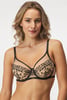 Biustonosz Aliza stanowi ciekawy kontrast koloru cielistego i czarnego. Leciutki tiul zlewa się z ciałem, co pozwala wyeksponować czarny haft ze wszystkimi szczegółami w całej okazałości.