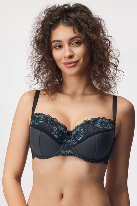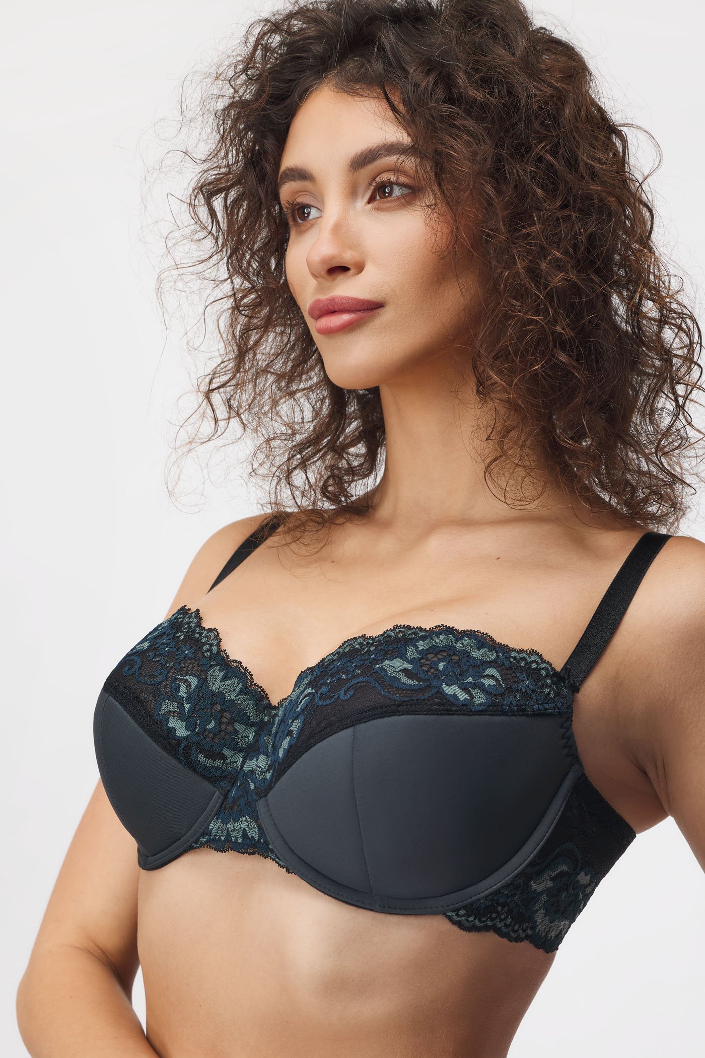 Półusztywniany biustonosz Daniella dla kobiet z dużym biustem. Miseczki w dolnej części są cudownie miękkie i lekko unoszą biust. Górną część miseczek tworzy leciutka koronka, która łatwo dopasowuje się do piersi. Z wysokim mostkiem.