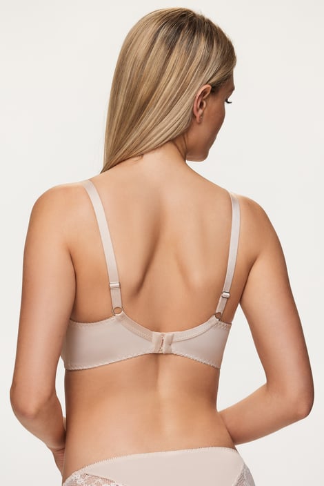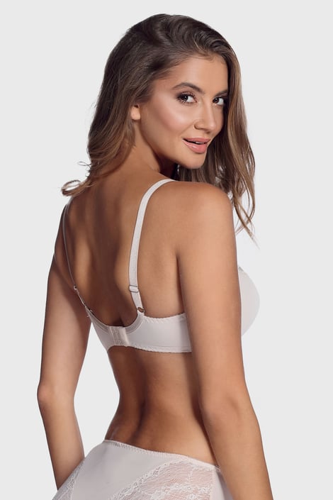 Półusztywniany biustonosz Ermina to elegancki model dla Pań z pełnym biustem. Miękko usztywnione miseczki o popularnym kroju typu T dodają piersiom atrakcyjności, a bogato haftowany tiul pięknie je zdobi.