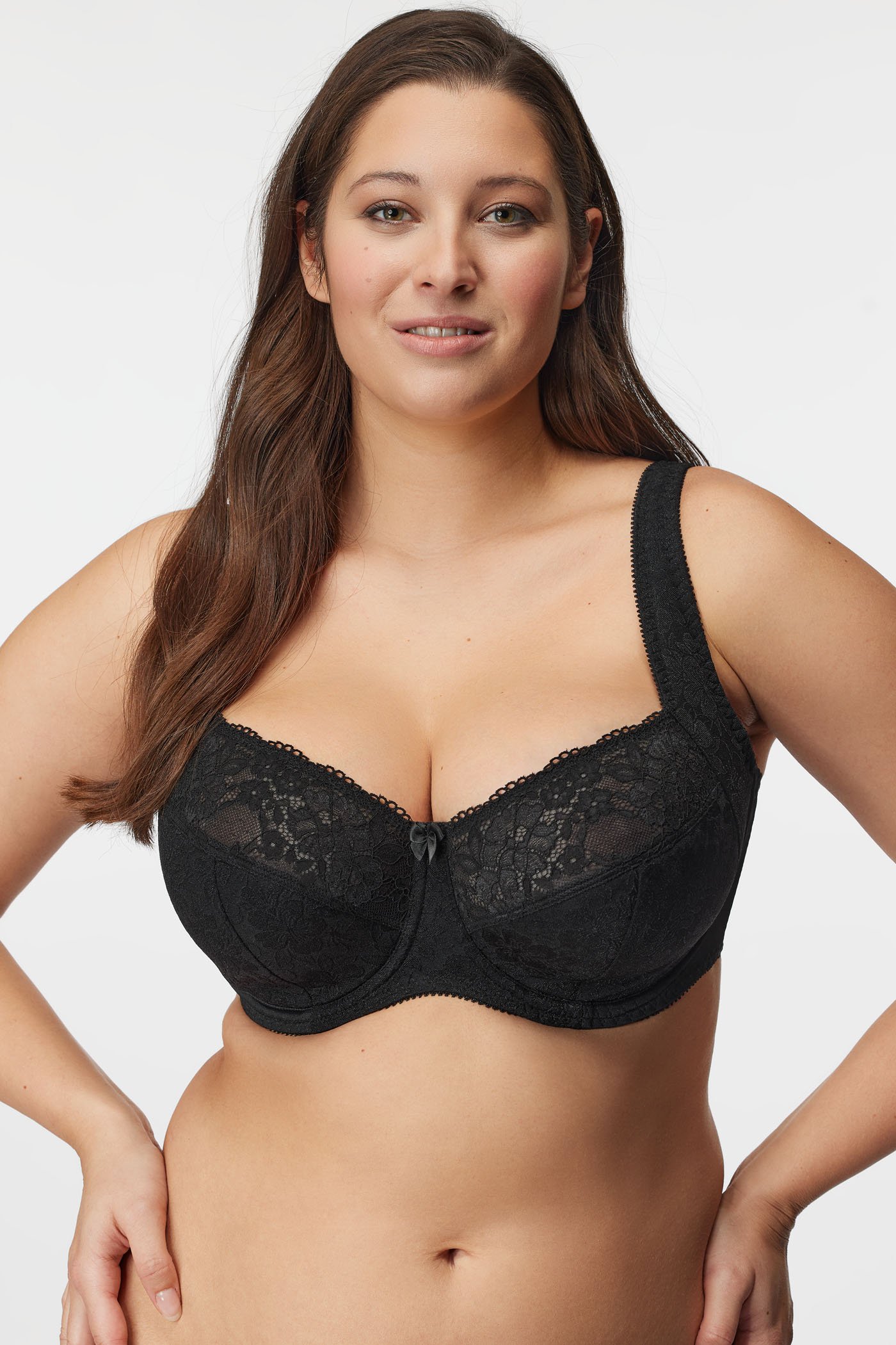 Półusztywniany biustonosz Grace II został zaprojektowany z myślą o posiadaczkach dużego biustu. Miseczki w dolnej części są miękko usztywniane, a górną część tworzy połączenie koronki i tiulu. Wzmocnione panele boczne pomagają zbierać piersi do środka.