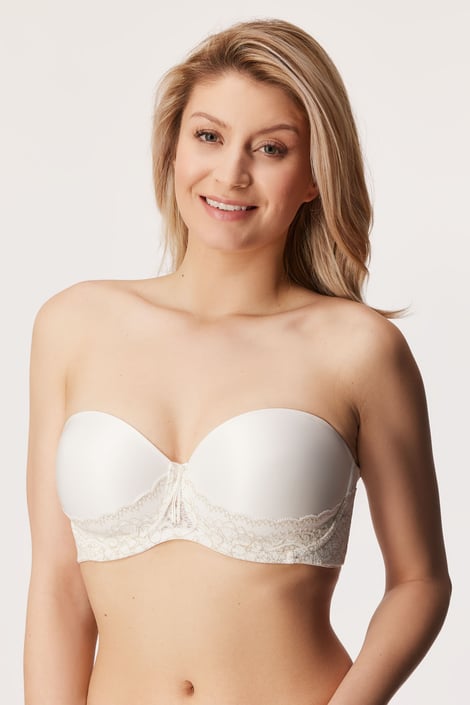 Biustonosz bardotka PrimaDonna I Do Natural Bardot stanie się ozdobą każdej garderoby. Usztywniane miseczki są pokryte koronką ze złotym haftem, która przechodzi aż na obwód. Po wewnętrznej stronie obwodu są dwie szerokie gumki, które utrzymują biustonosz w miejscu również po odpięciu ramiączek.