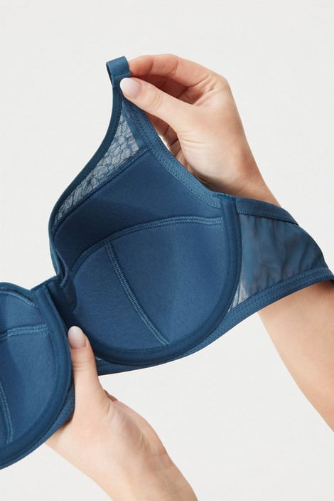 Biustonosz Ardene z miękkiej koronki jest wprost stworzony także dla posiadaczek dużych piersi. Usztywniane miseczki o popularnym kroju typu T pięknie modelują biust, a fiszbiny zapewniają mu podparcie. Wysoki mostek utrzymuje go w miejscu. Tył obwodu jest z siateczki. Projekt specjalistów z Astratexu.