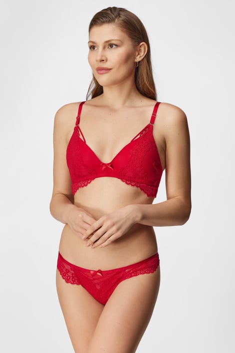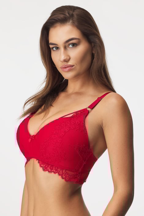 Biustonosz Claire Red wyeksponuje Twoją kobiecość. Miękkie miseczki są pokryte delikatnym tiulem oraz haftowaną koronką z kwiatowym wzorem, która zdobi obwód i ramiączka z tyłu. Brak fiszbinów zapewnia poczucie absolutnego komfortu.