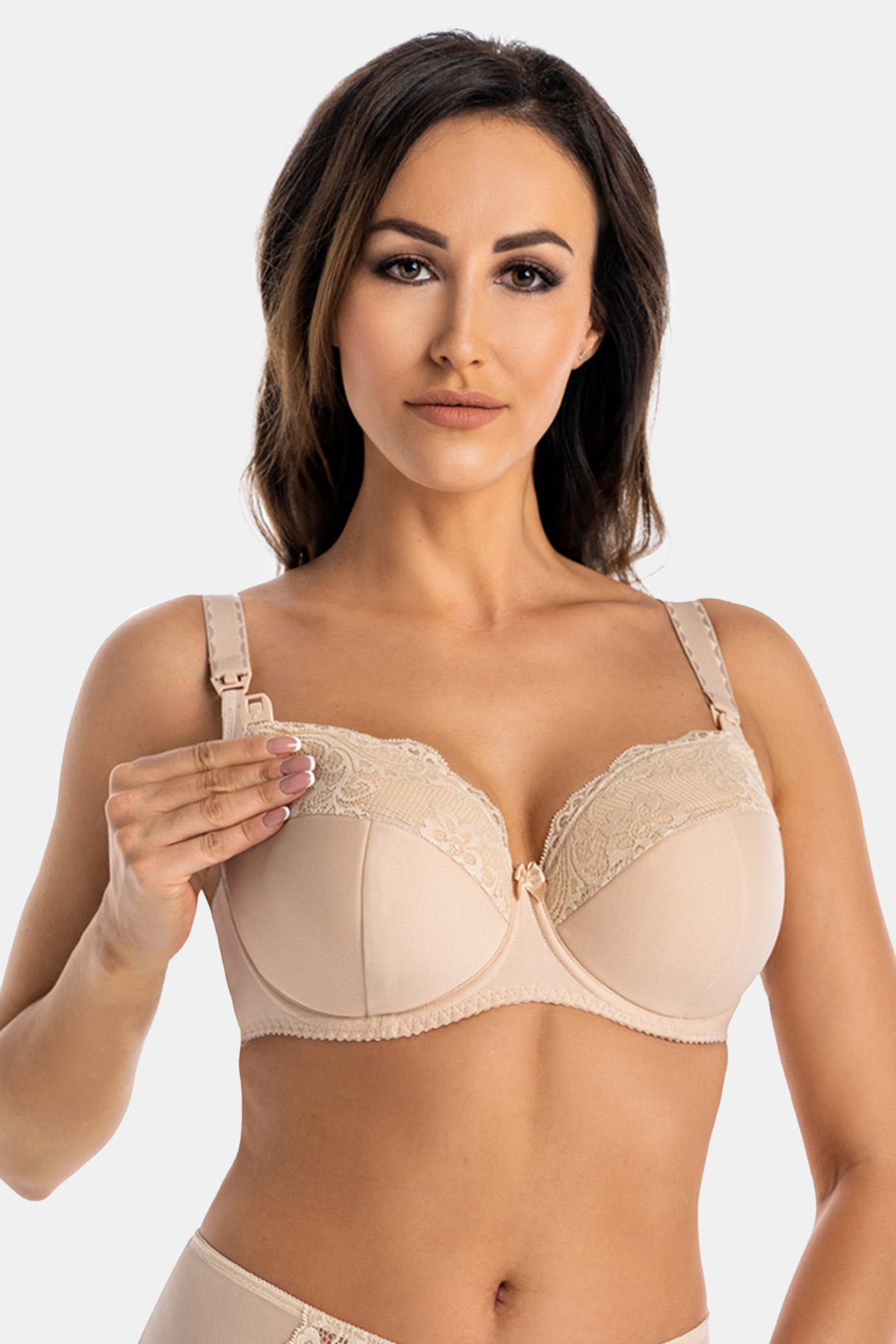Zapewnij sobie wygodę w czasie karmienia za sprawą usztywnianego biustonosza Marte. Modelujące miseczki zdobi elegancka koronka w górnej części, wnętrze dla większej wygody jest podszyte bawełną.