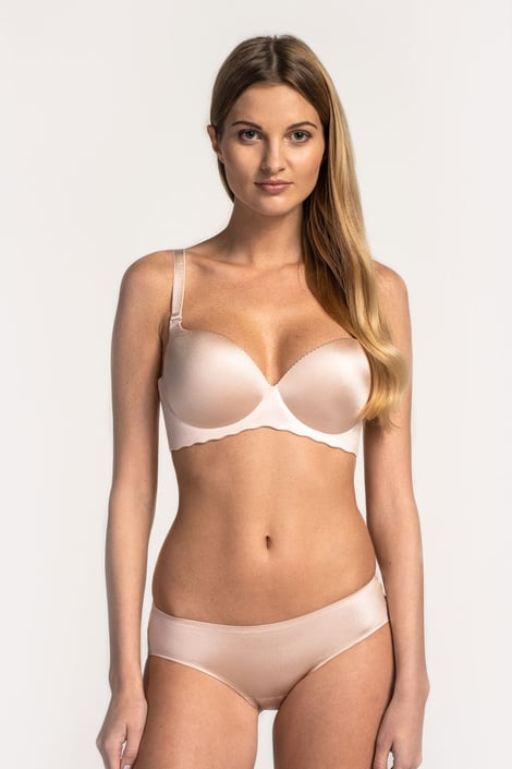 Gładki biustonosz Invisible to ucieleśnienie wygody. Dzięki specjalnej technologii Cut & Seal powstał unikatowy, bezszwowy model, który nigdzie się nie strzępi. Usztywniane miseczki nie mają fiszbinów, które mogłyby powodować nieprzyjemne odciśnięcia. Ramiączka możesz odpiąć, dowolnie skrzyżować lub zastąpić silikonowymi. Szeroki obwód zapewnia wygodę noszenia.