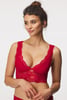 Braletka Pieces Lina ze zmysłowej czerwonej koronki. Usztywniane miseczki naturalnie modelują biust, a brak fiszbinów zapewnia pełen komfort.