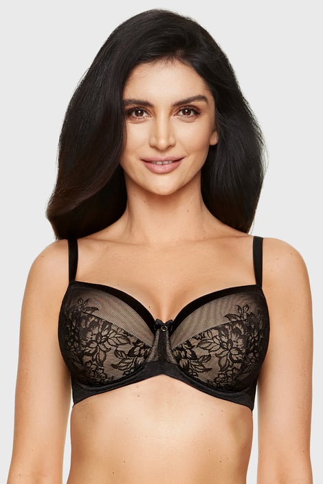 Romantyczny biustonosz Porto zapewni podparcie również pełnym piersiom. Miękko usztywniane miseczki o popularnym kroju typu T zadbają o doskonały krągły kształt biustu, a fiszbiny klasyczne dadzą mu konieczne oparcie. Powierzchnię miseczek zdobi kwiatowy haft, a ich górną linię błyszczący pasek.