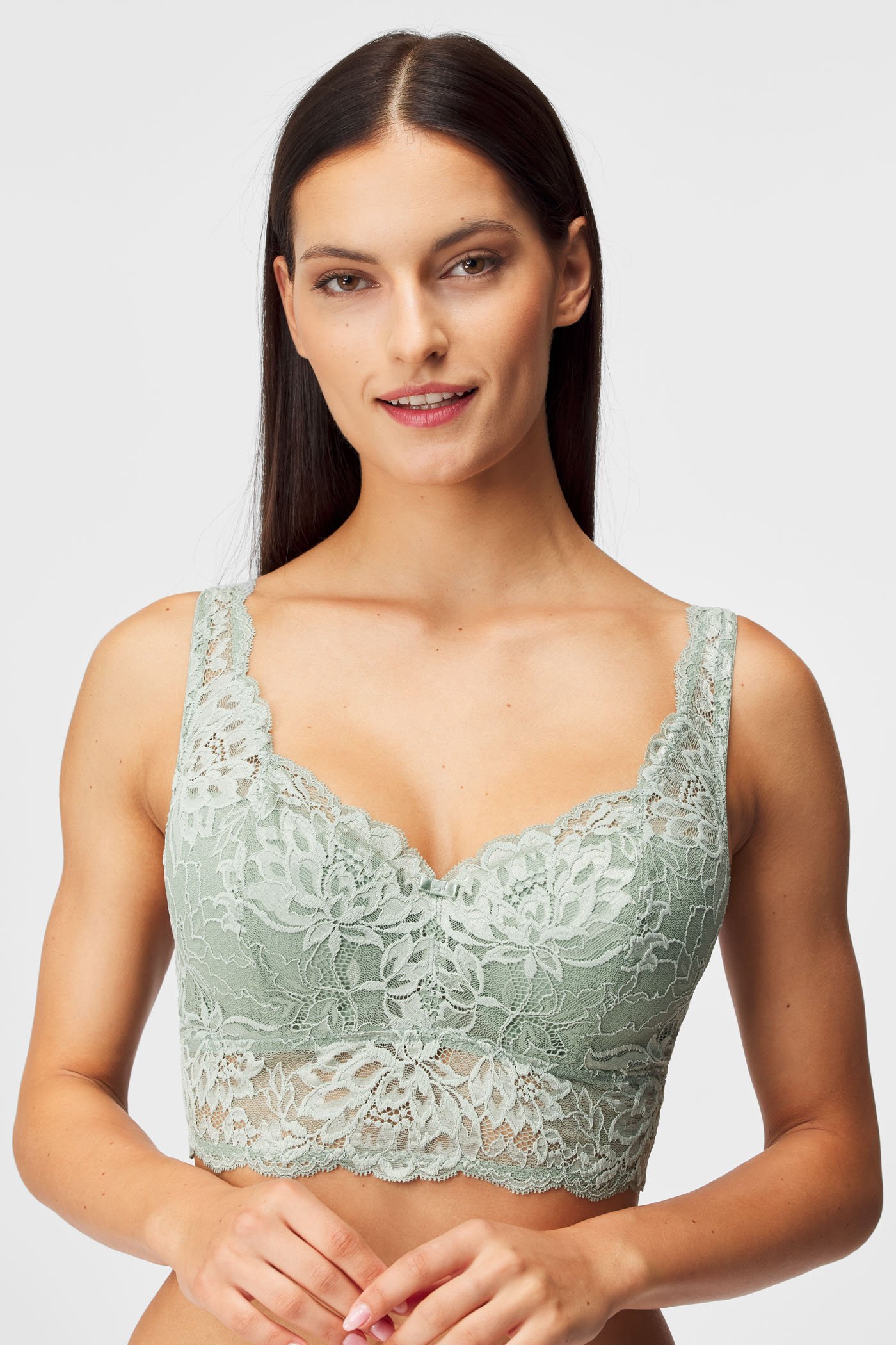 Koronkowy biustonosz Triumph Amourette Pure stanie się ozdobą Twojej garderoby. Miękko usztywniane miseczki od wewnątrz są podszyte wygodną dzianiną bawełnianą. Koronka swobodnie przechodzi z miseczek na ramiączka i zdobi również cały obwód.