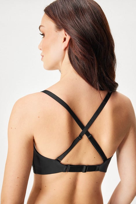 Biustonosz Wonderbra Ultimate Plunge umożliwi Ci noszenie najbardziej odważnych modeli sukienek z głębokim dekoltem. Gładkie usztywniane miseczki oddziela bardzo niski, wzmocniony mostek. Tylna część obwodu ma regulowaną długość i jest zapinana na szeroką, płaską klamrę. Niezastąpiony biustonosz na różne ważne okazje.