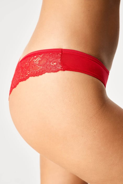 Majtki brazylijskie Eve atrakcyjnie modelują pupę. Subtelna kwiecista koronka zmysłowo podkreśla jej krągłą linię.