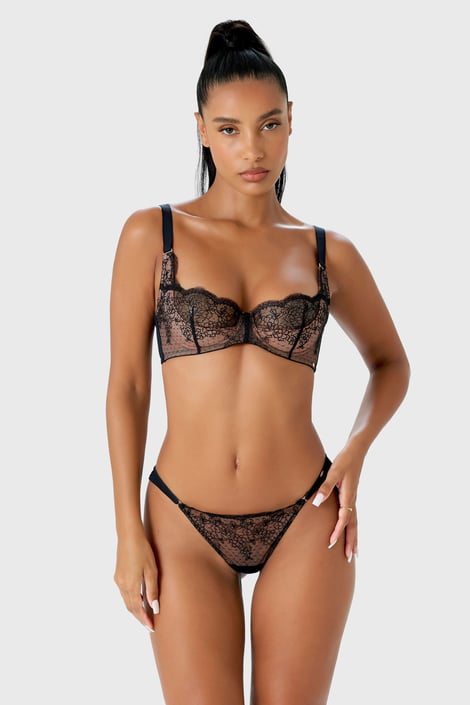 Majtki brazylijskie Gossard VIP Devotion z lekkiej jak pajęczyna siateczki. Z przodu wyróżnia się subtelny kwiatowy haft z błyszczącymi dżetami. Tył jest lekko prześwitujący.