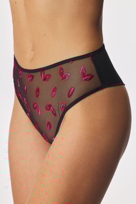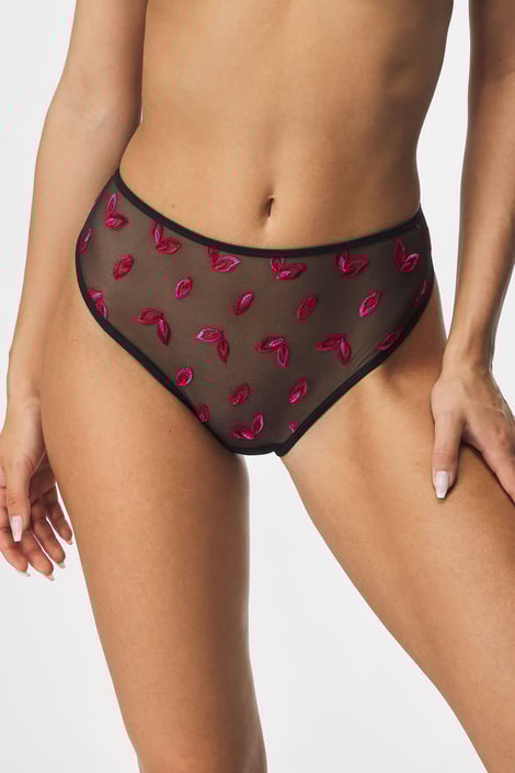 Majtki brazylijskie Warm Kisses z mięciutkiej bawełny. Z przodu wyróżnia się kontrastowy haft, tył jest zmysłowo prześwitujący.
