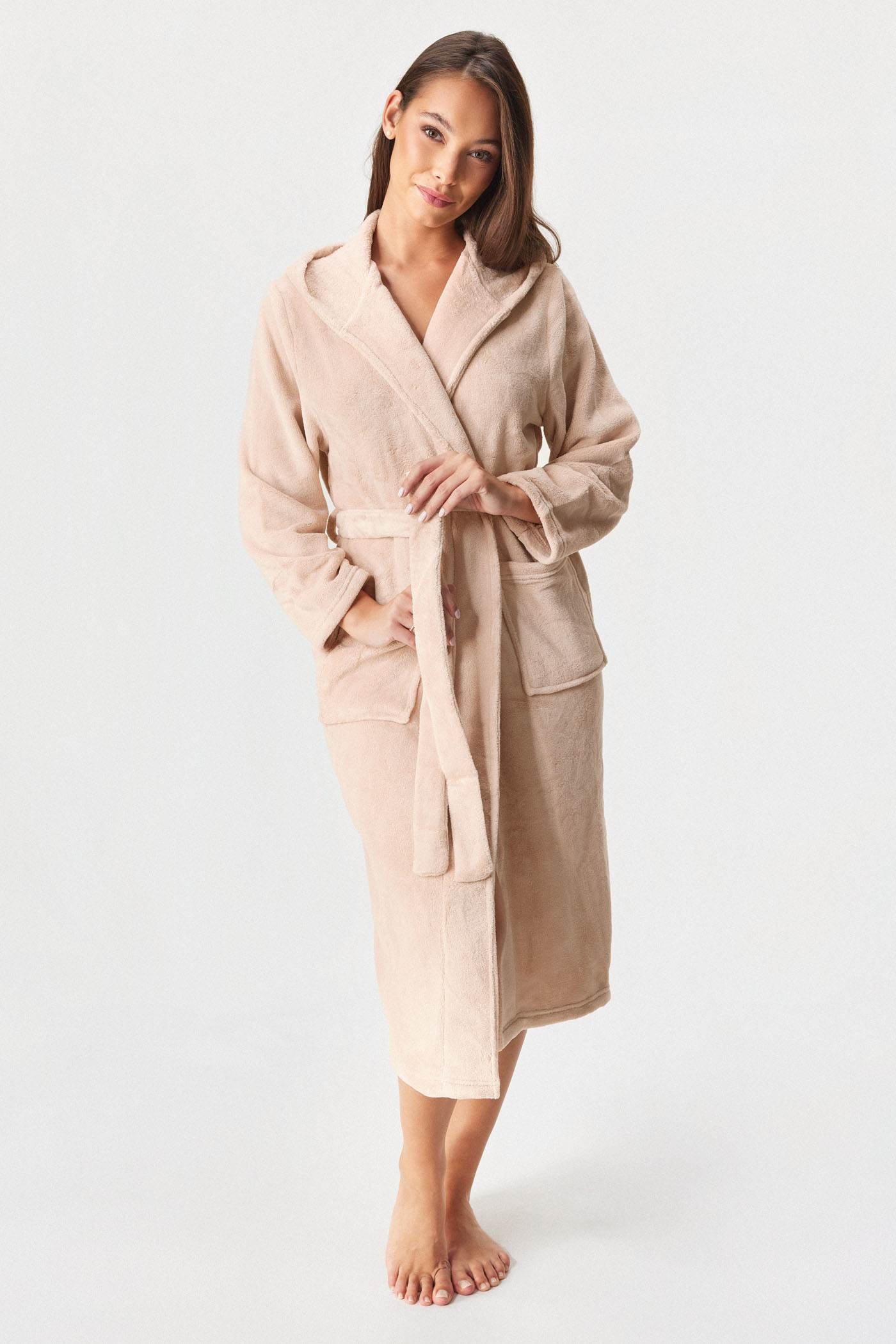 Otul się ciepłym szlafrokiem Moreno i ciesz się wieczornym komfortem. Model o długim kroju z kapturem zagrzeje Cię od stóp do głów. Zawiąż pasek w talii. W naszytych kieszeniach ukryjesz nie tylko chusteczki higieniczne. Projekt specjalistów z Astratexu.
