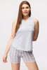 Bawełniana piżamka Dollee zapewniająca spokojny sen i weekendowy wypoczynek. Top na szerokich ramiączkach ma dwa guziki w dekolcie, a szorty w paski mają w talii szeroką gumę.
