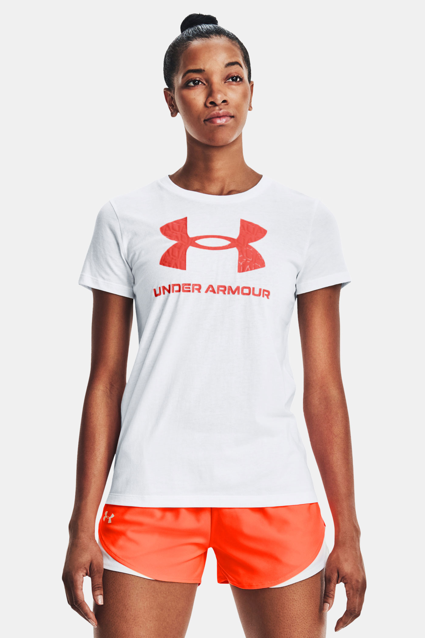 T-shirt Under Armour Women's Graphic Electric T-Shirt łączy w sobie najlepsze cechy bawełny i materiału syntetycznego. Na piersi wyraziste logo.