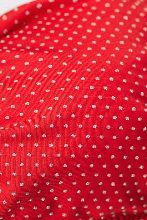 Dwuczęściowy strój kąpielowy Colette Red z usztywnianymi miseczkami o popularnym kroju typu T, który doskonale pasuje także kobietom z większym biustem. Drobne kropeczki subtelnie błyszczą. Majtki o klasycznym kroju są dobre także dla pełnych kształtów. Model zaprojektowany przez specjalistów z Astratexu.