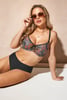 Dwuczęściowy strój kąpielowy Lucia Big zaprojektowany w Astratexie jest wprost stworzony dla posiadaczek pełnych kształtów. Biustonosz ma miseczki na fiszbinach, które są przyjemnie miękkie i obszerne oraz zapewniają piesiom pożądany kształt. Wysoki mostek niezawodnie utrzymuje biust na swoim miejscu. Model z wielobarwnym nadrukiem ze złocistą nitką. W komplecie czarne klasyczne majtki z podwyższonym stanem. Materiał jest odporny na promieniowanie UV, chlor i środki do opalania.