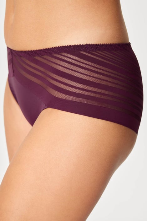 Klasyczne figi Siluet to efektowne połączenie gładkiej mikrofibry i elastycznego tiulu w delikatne paski. Tył jest lekko prześwitujący.