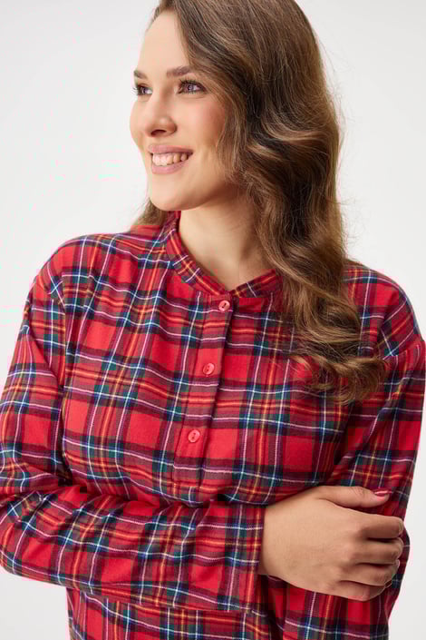 Ciepła koszula nocna Festive Red ze 100% flaneli bawełnianej będzie Twoim miłym towarzyszem na chłodne wieczory. Z okrągłym dekoltem i zapięciem na guziki na piersi. Marka Astratex.