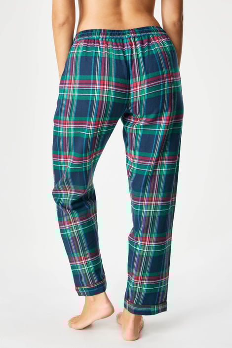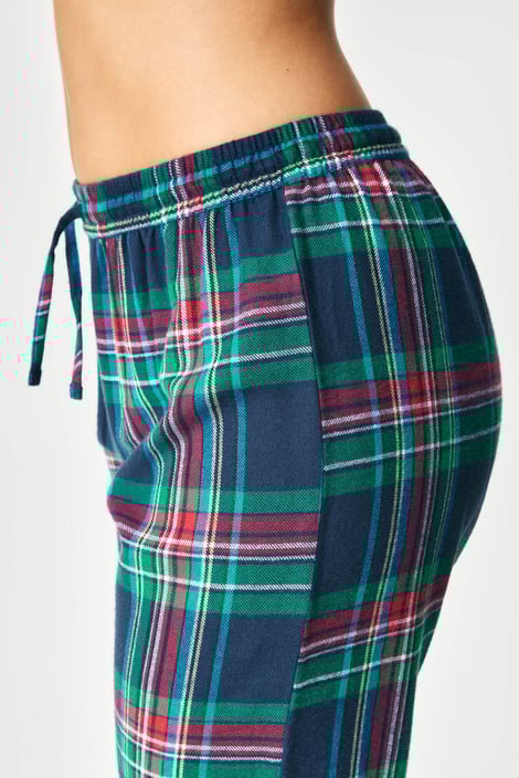 Flanelowe spodnie od piżamy Festive Lights o luźnym kroju, uszyte z mięciutkiej bawełny, zapewniają pełen komfort. W pasie mają wszytą gumę i dodatkowo wiązanie. Nogawki są zakończone mankietami. Projekt specjalistów z Astratexu.