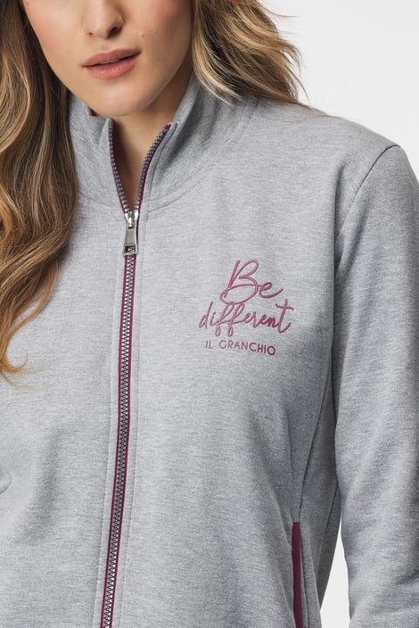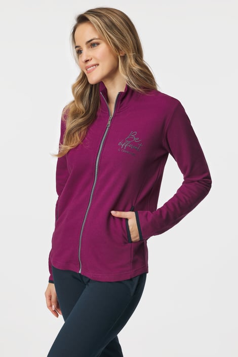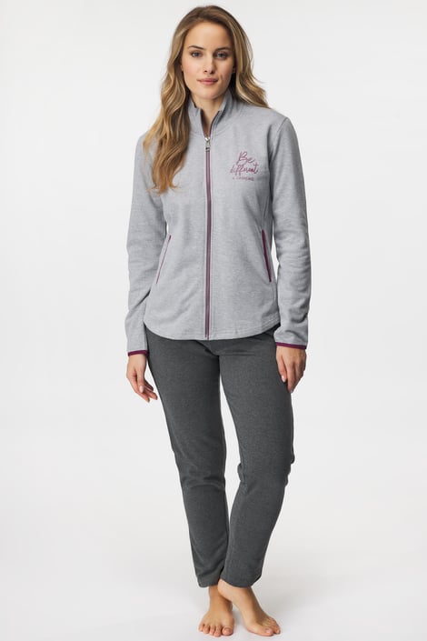Komplet Be Different z miłej bawełny to doskonały wybór jako odzież domowa. Bluza ma praktyczną stójkę i kieszenie po bokach. Długie spodnie są jednobarwne.