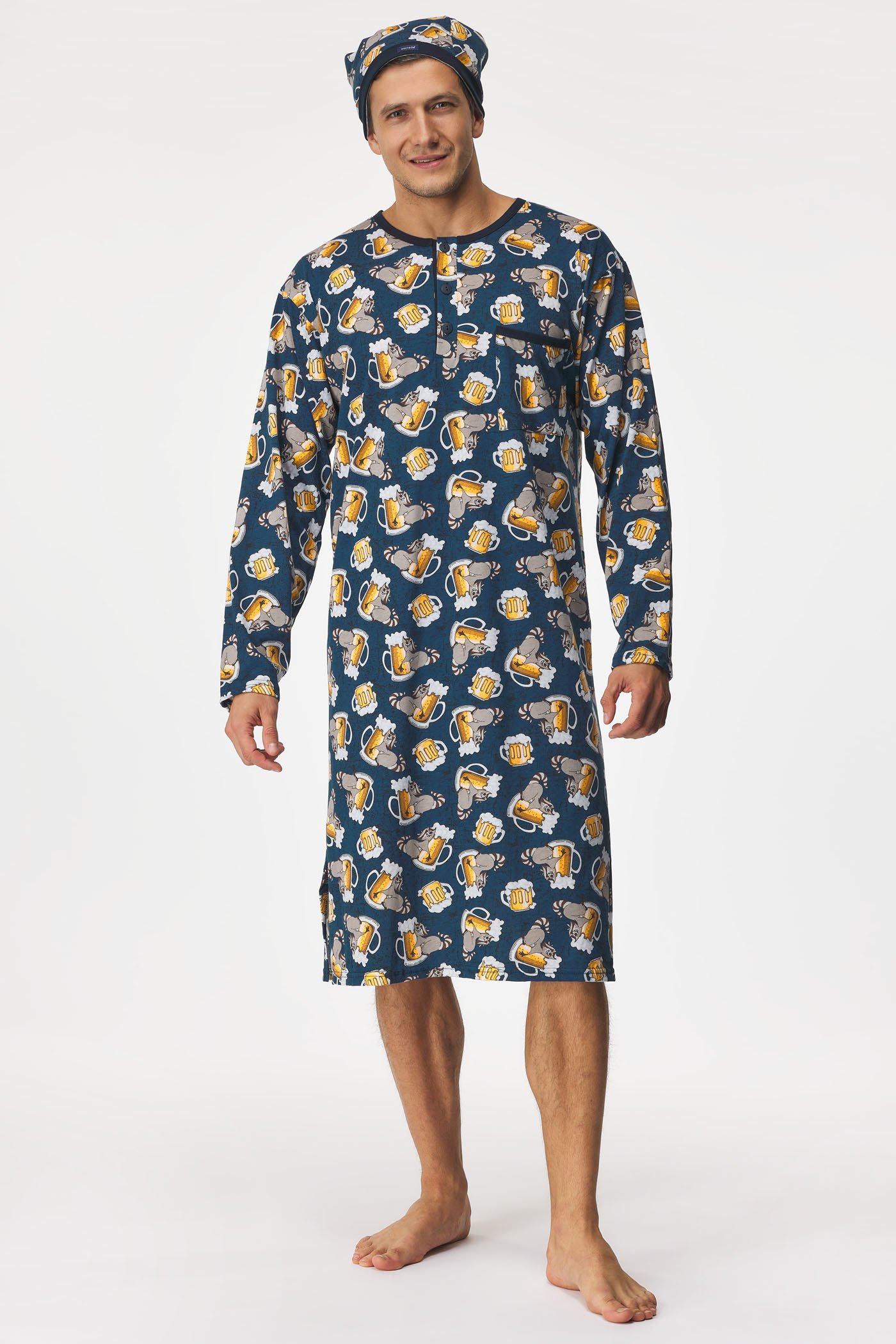 Męska koszula nocna Beer ze 100% bawełny zapewni Ci maksymalną swobodę.
