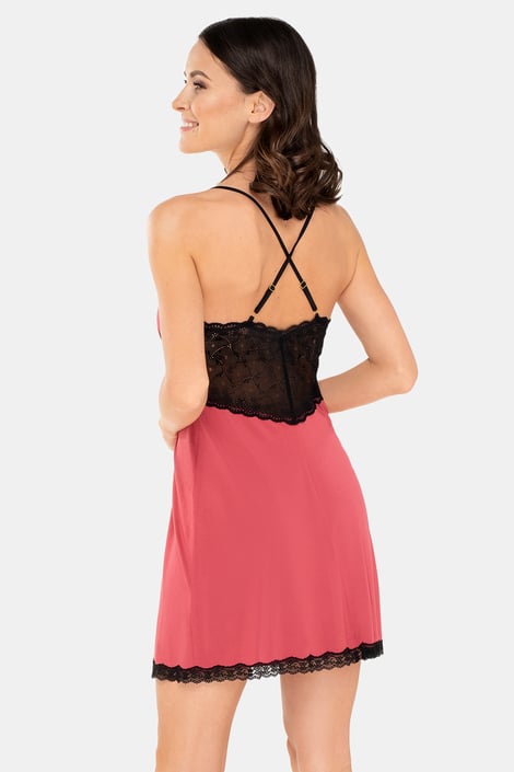 Koszulka nocna Judy łączy w sobie atrakcyjny krój i niezwykle miłe materiały. Gładka i bardzo lekka wiskoza cudownie spływa po ciele, a dekolt i plecy zdobi piękna koronka.